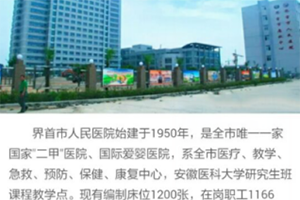 界首市人民醫(yī)院始建于一九五0年,系衛(wèi)生部批準(zhǔn)的“二級(jí)甲等綜合性醫(yī)院”,是全市...
